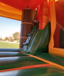 This huge Jumping Castle features a spacious bouncing area, a ascend with a slide, twisting challenge and a Tyrannosaurus Rex dinosaur!